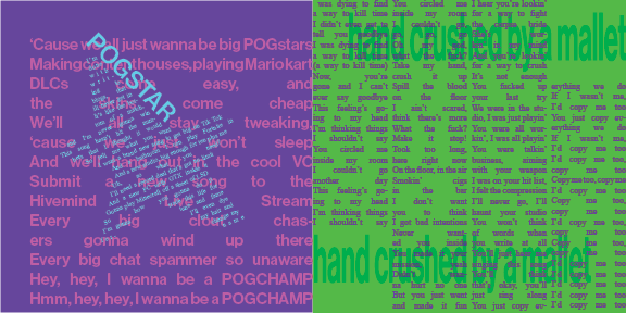 A lyric booklet for my mix CD compiling some of the best hyperpop songs of the 2020s. A fun experiment with type.