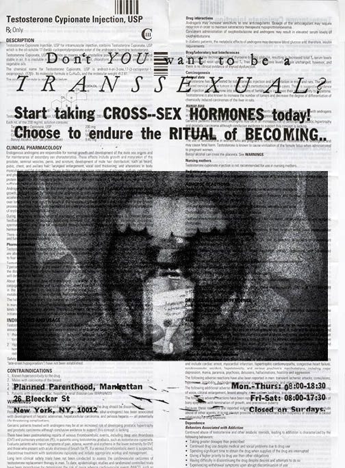 A monthly transgender zine about transgender stuff. Distributed at house shows on Long Island and local art markets in the NY/NJ/CT area.